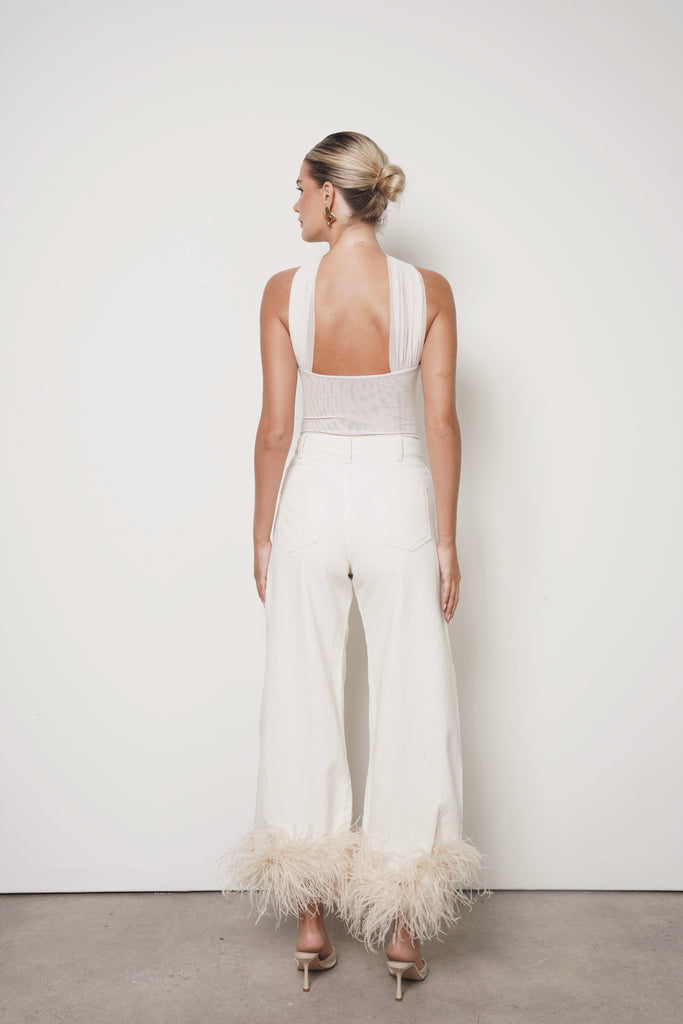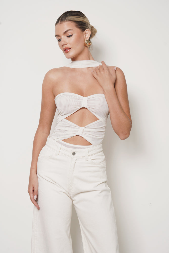 Un statement piece. Este body strapless en mesh incorpora aberturas estratégicas que resaltan la figura y añaden un toque de sensualidad equilibrada. El detalle en el cuello aporta un acabado elegante y moderno que transforma cualquier look.