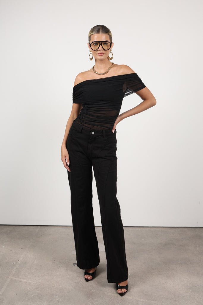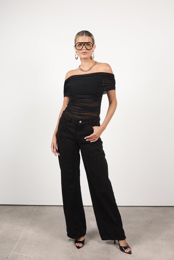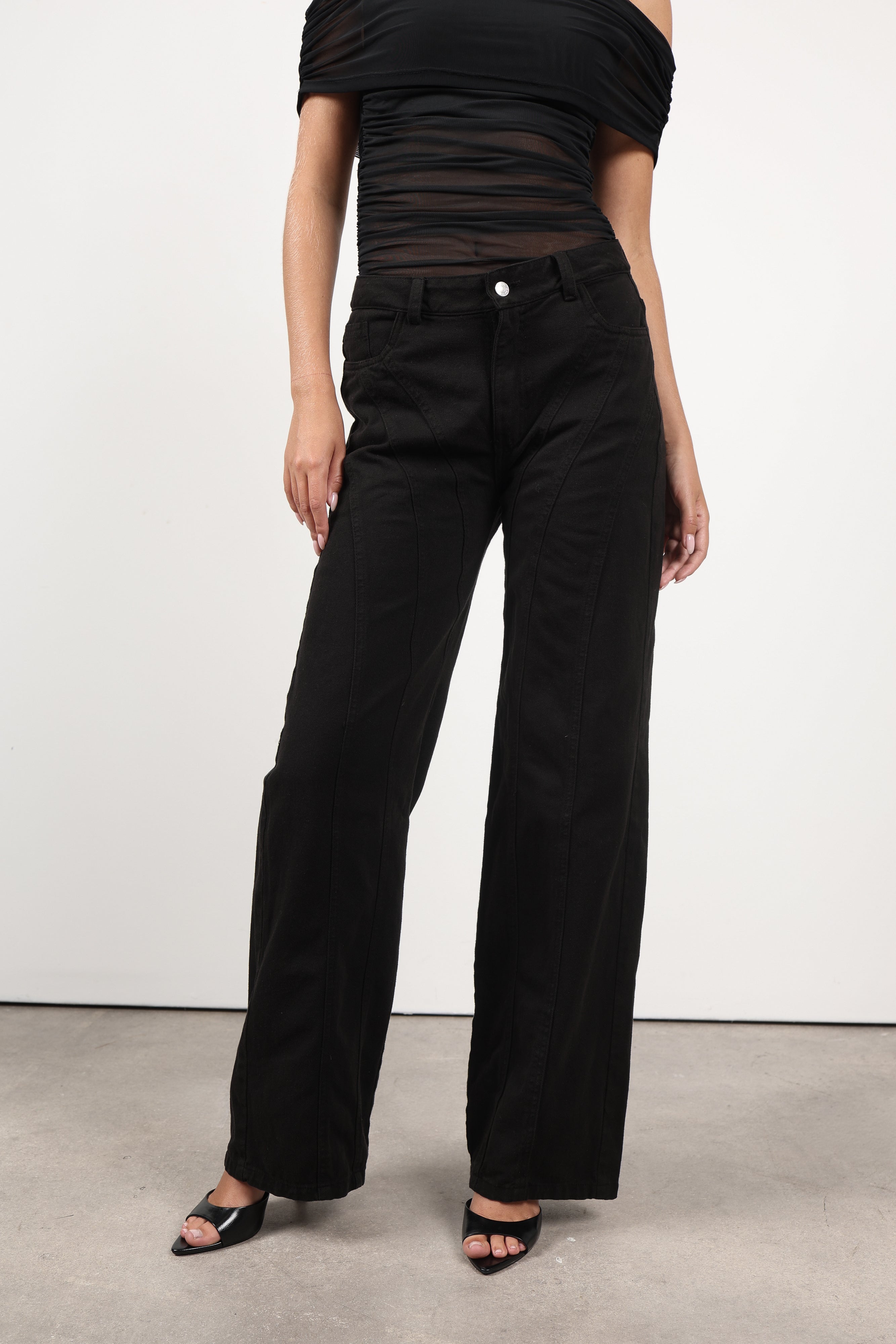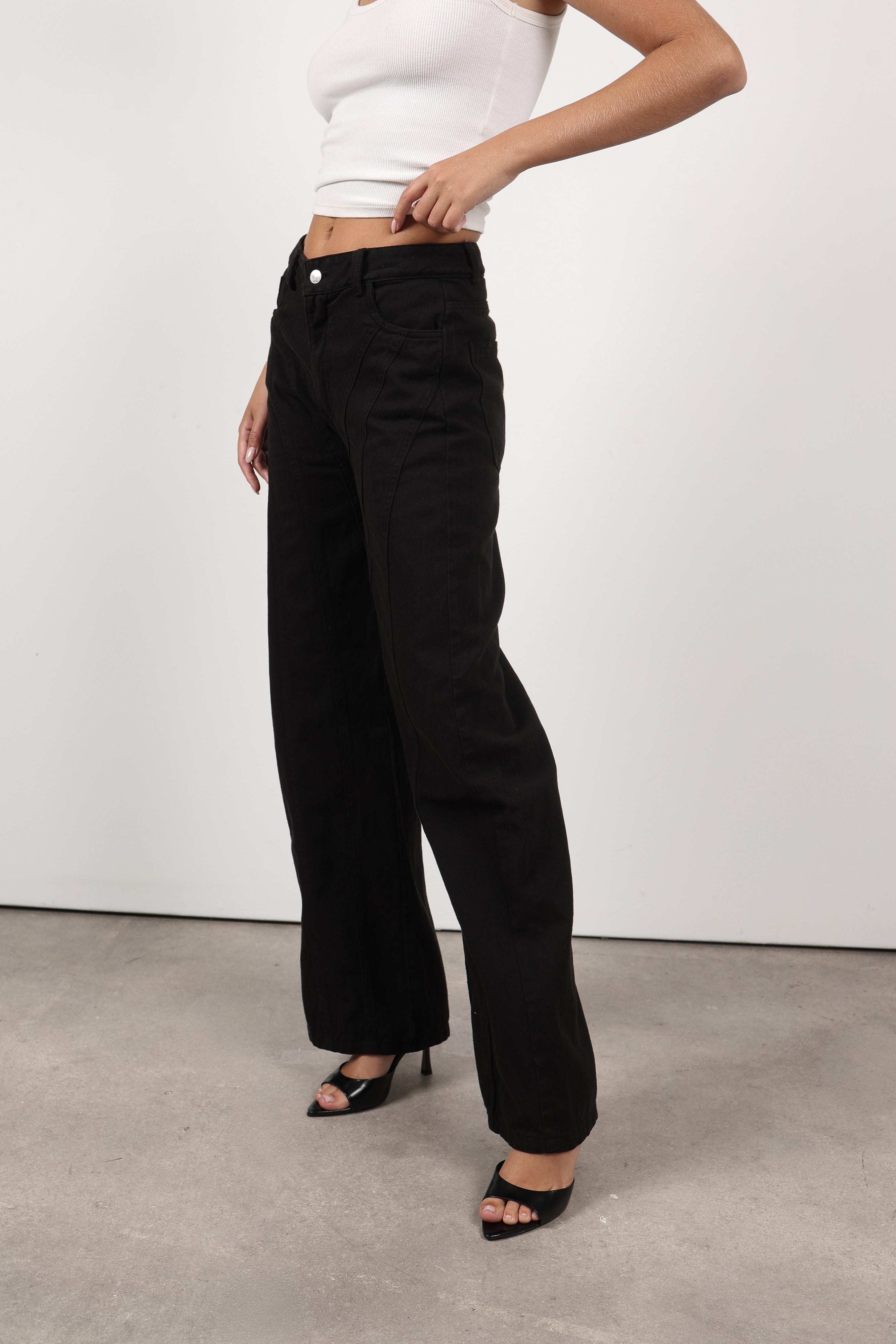 Fresco y moderno, este denim wide leg de tiro medio resalta por sus costuras únicas a lo largo de las piernas, que alargan visualmente la silueta. Una prenda atemporal y chic, fabricada en denim de alta calidad.